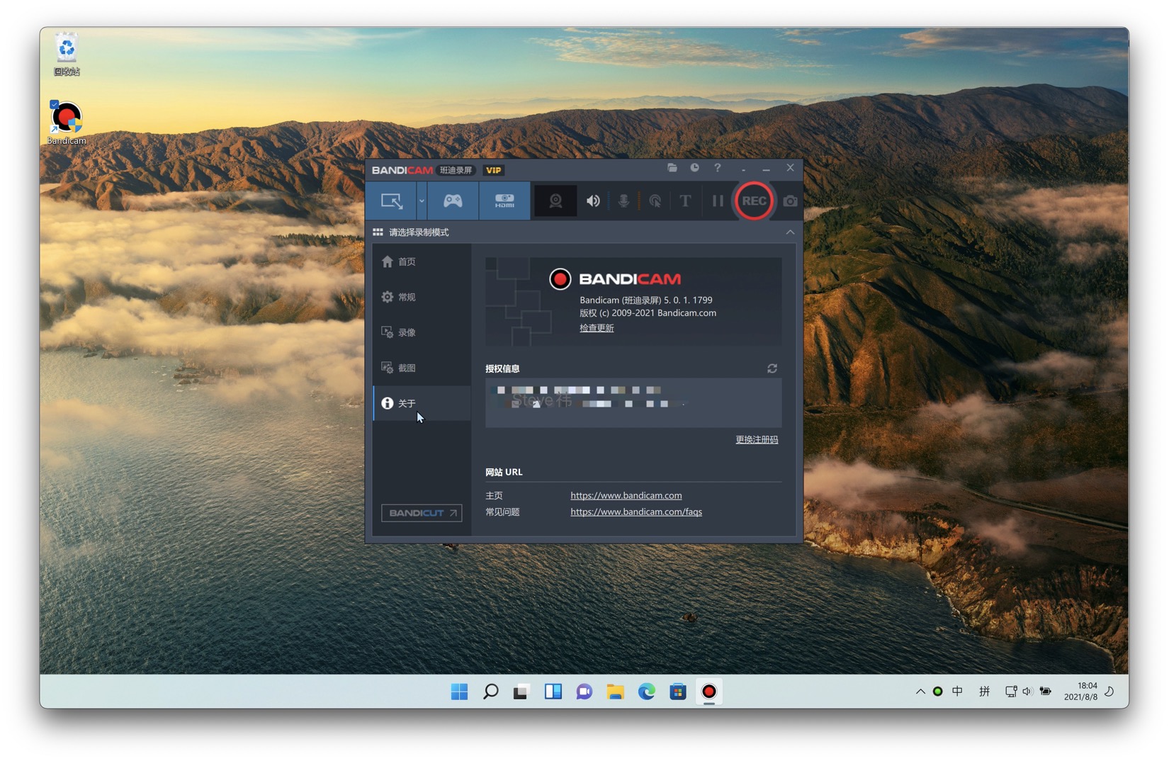 软件是付费软件 免费版只能录制10分钟 且带有bandicam水印