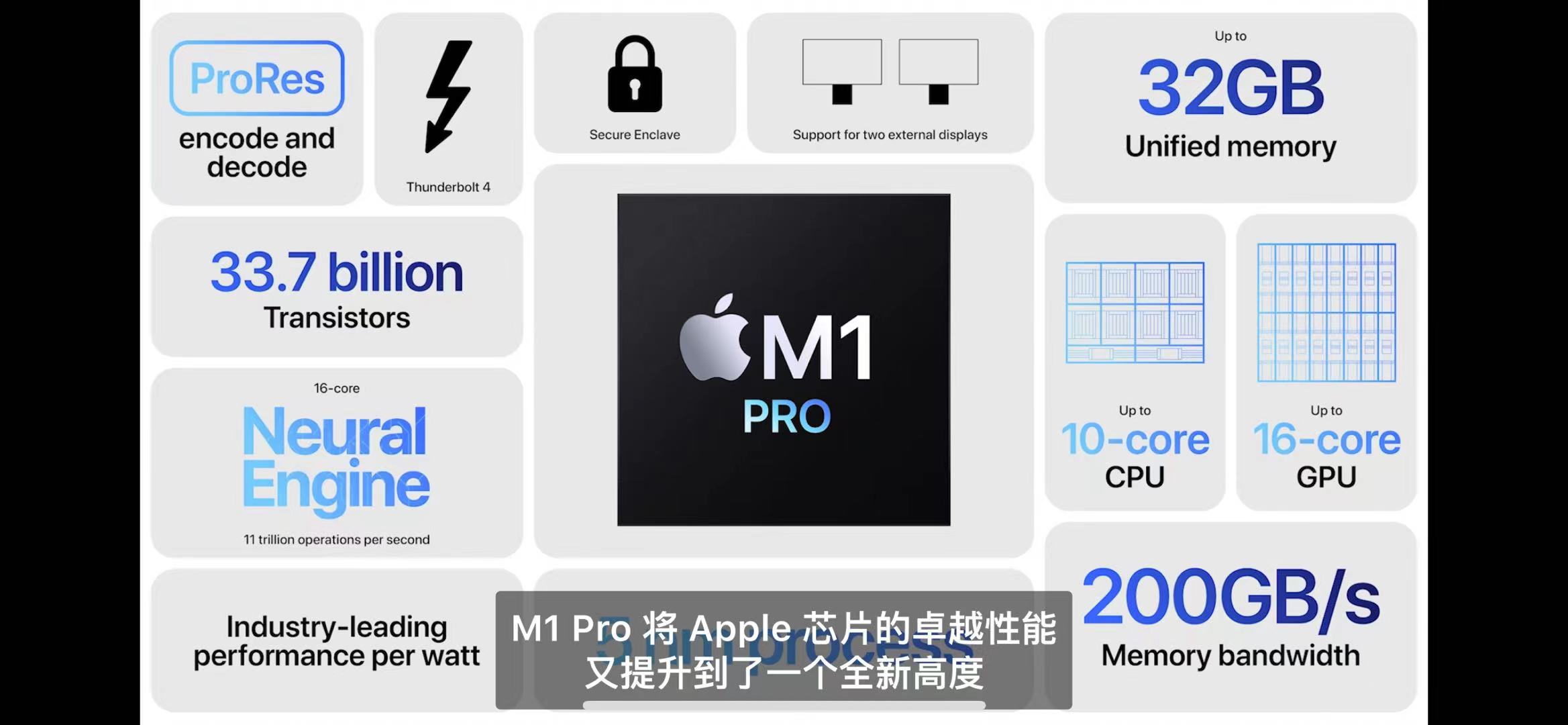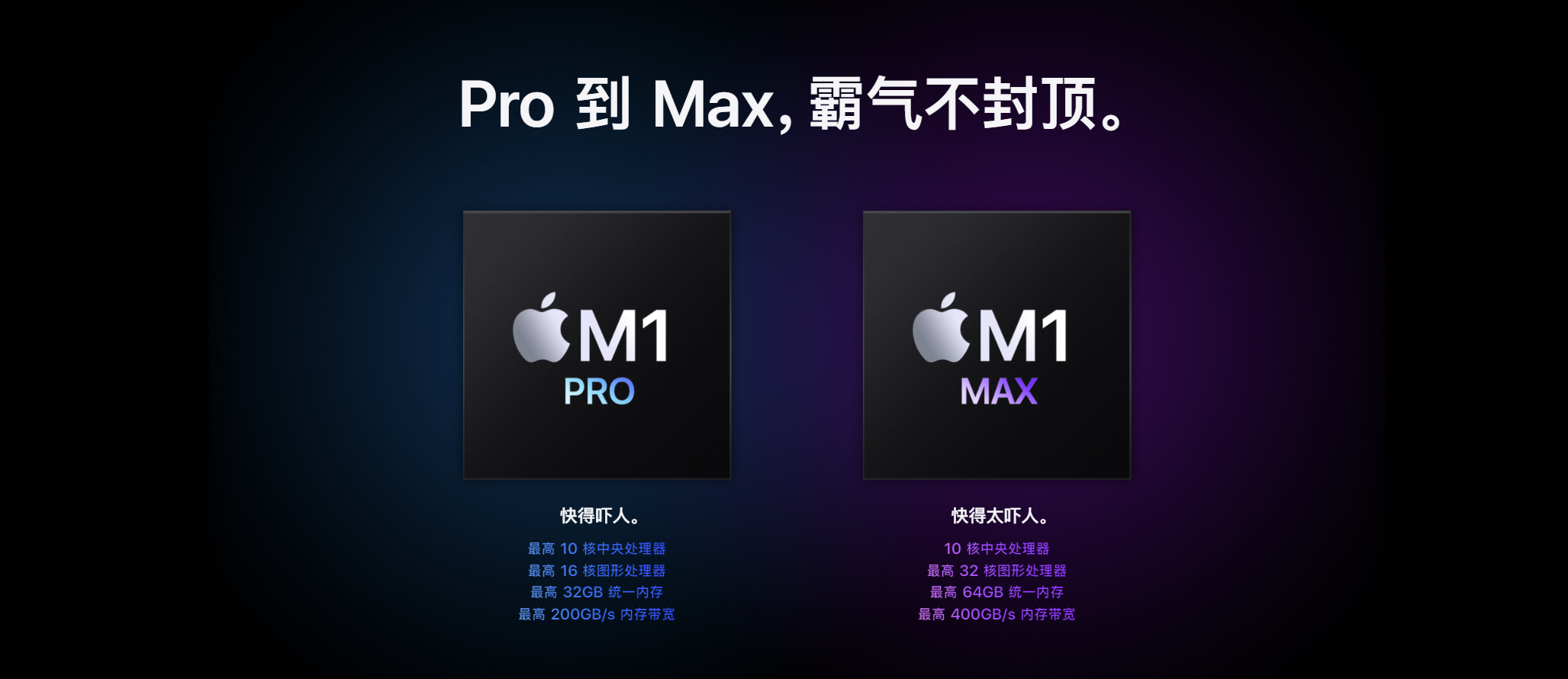 首先介绍的是新款的Apple Silicon自研Soc——M1 Pro和M1 Max,两款基于M1芯片的“大杯”和“超大杯”