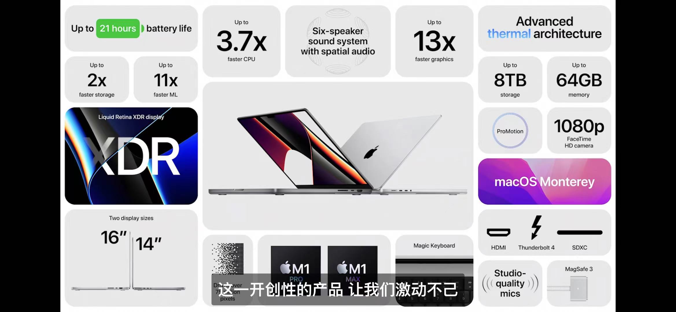 相应的,搭载了M1 Pro和M1 Max的MacBook Pro也进行了重新的模具设计和硬件升级。